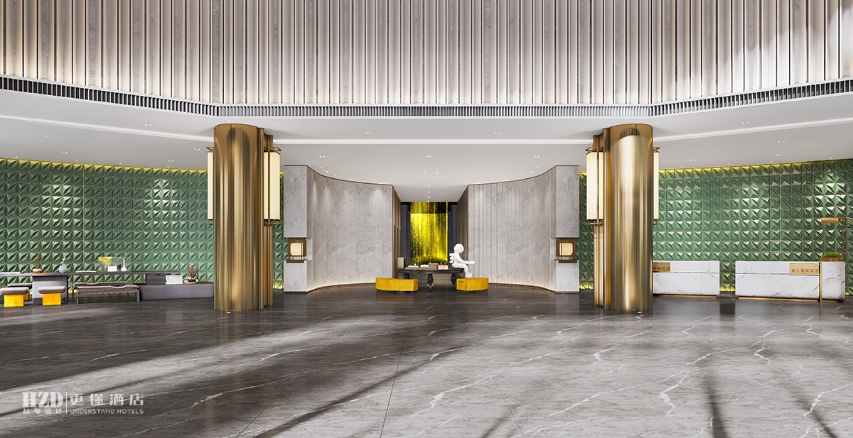 酒店设计过程中大堂吧给人的感觉稳重,大气、高端、上档次而又不失品位,给人眼前一亮的感觉,这样的酒店设计更具有品质感。